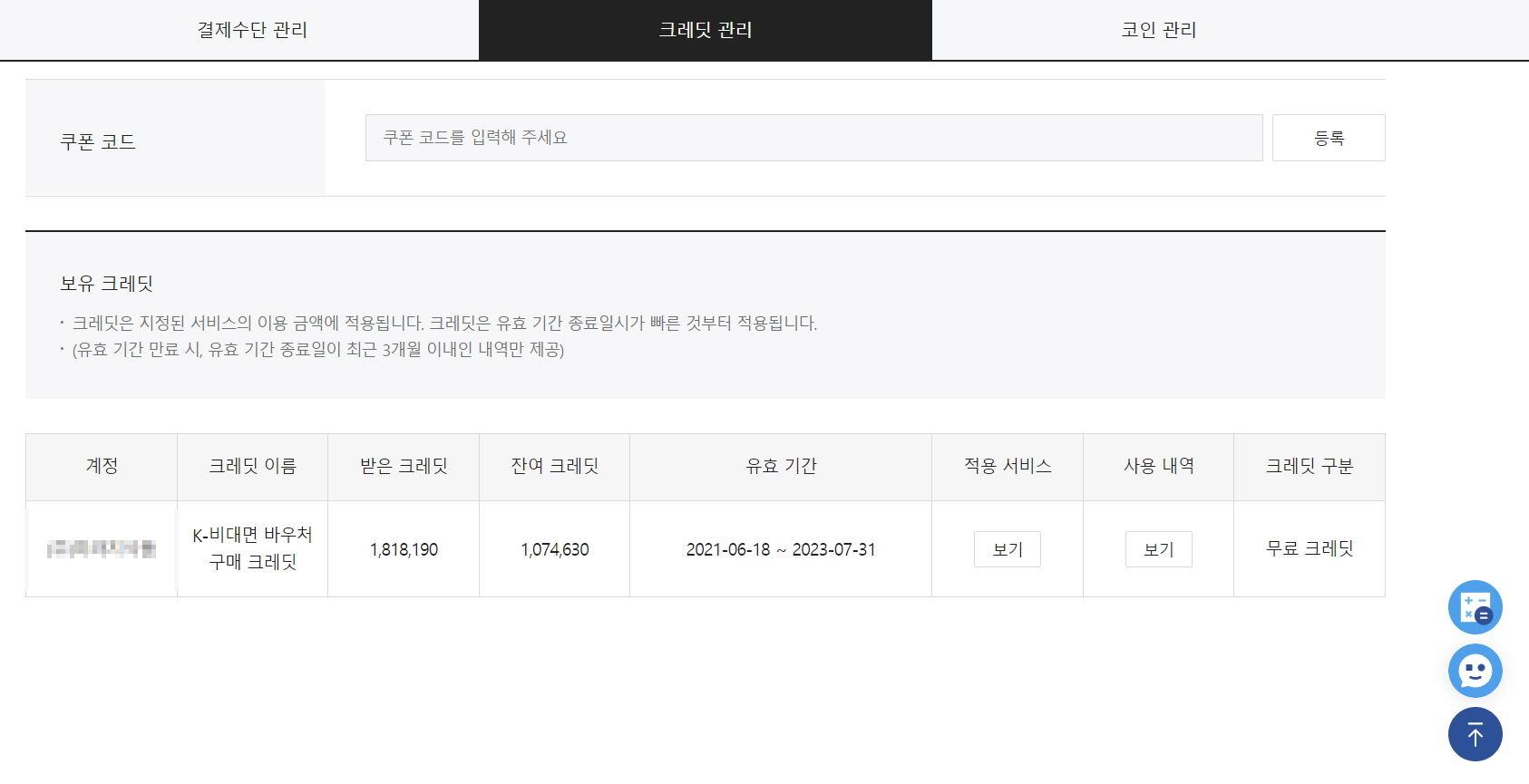 좌측의 아이콘을 클릭하면 해당 기능의 웹페이지가 바로 연동됩니다.