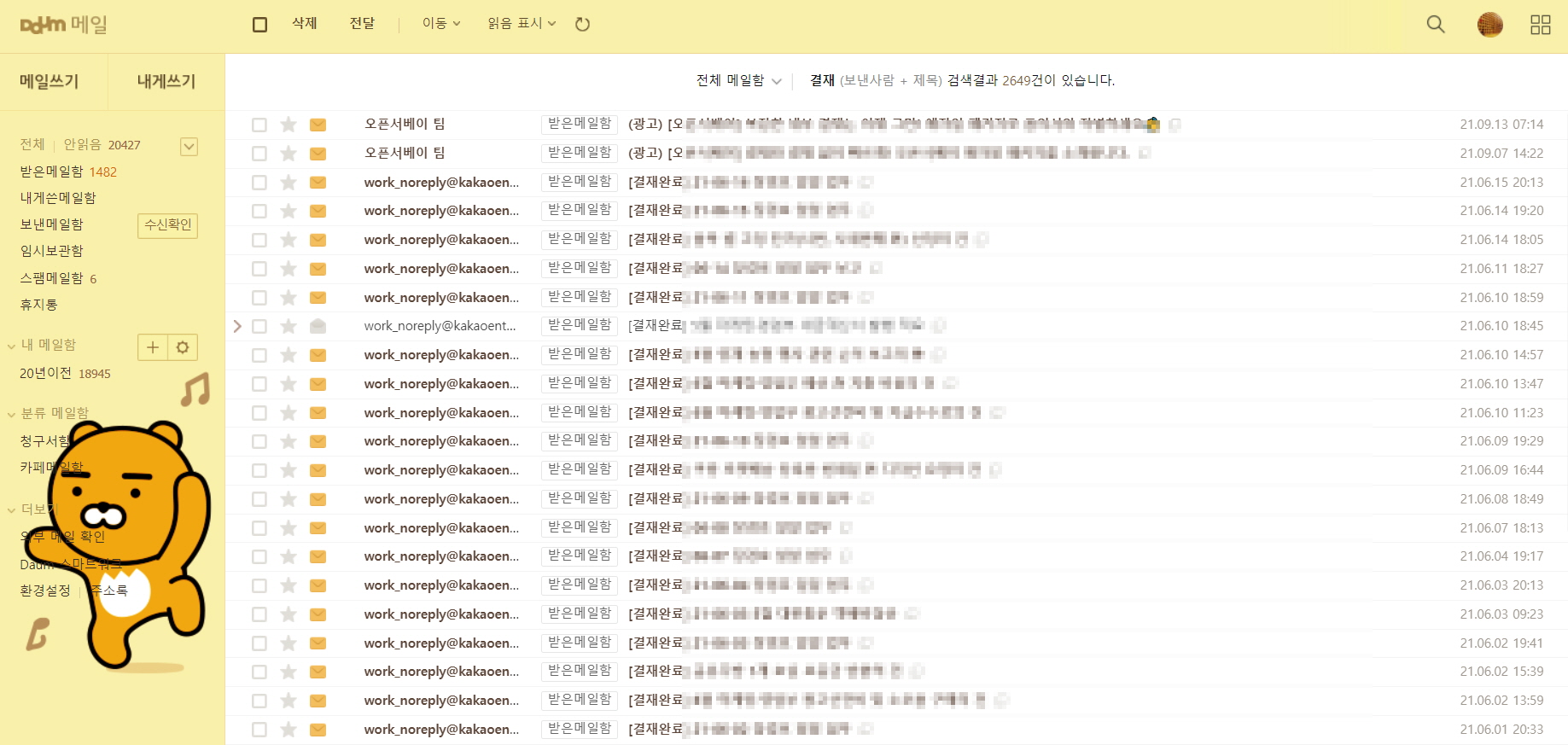 메일은 다음에서, 전자결재와 메신저는 카카오워크로 사용하셔야 해요.