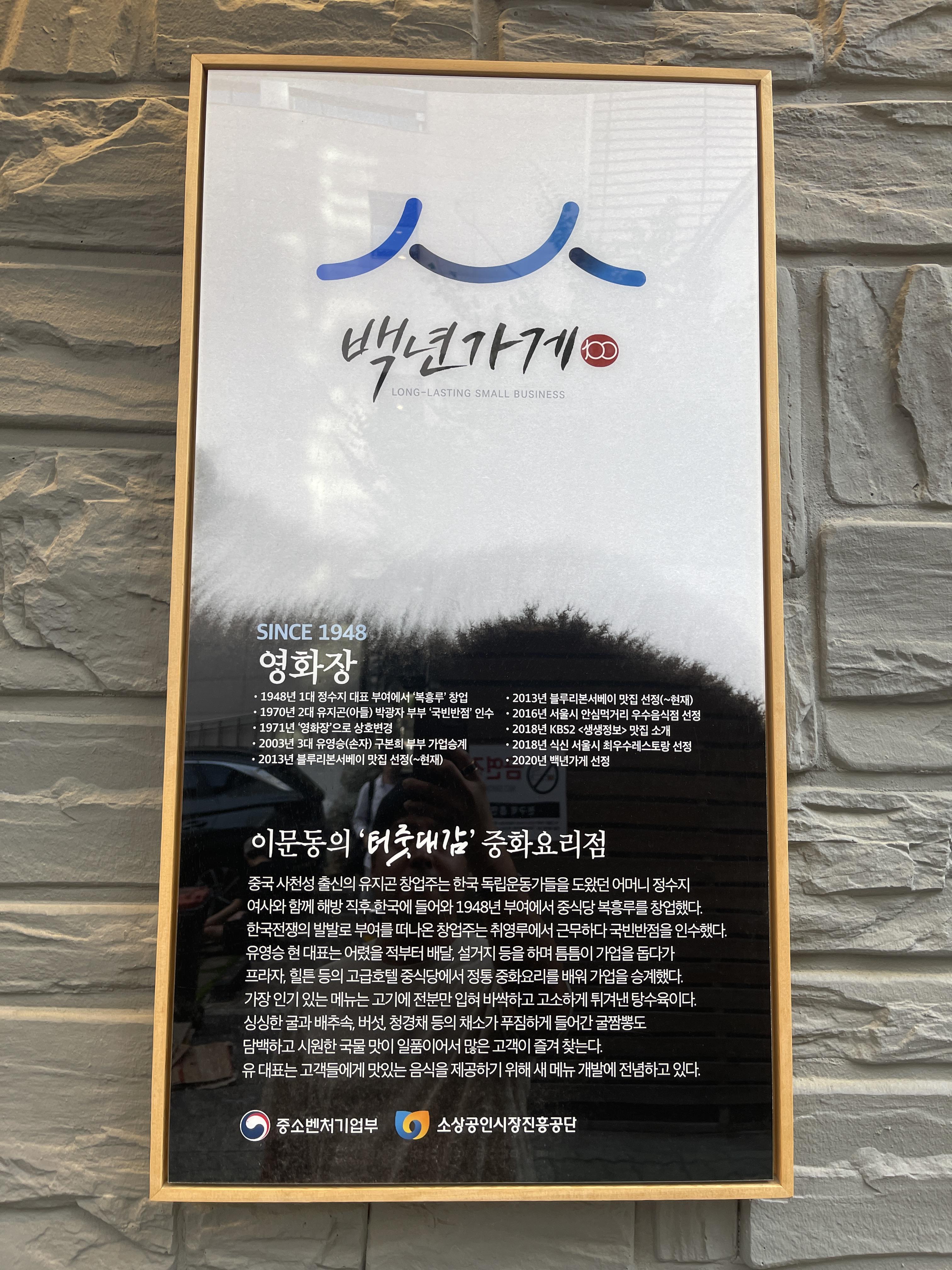 오랜 전통에 가게인 만큼 많은 사람들이 방문하는 걸 볼 수 있었어요. 우선 백년가게는 중기청에서 인증해주는대요. 프랜차이즈가 아니어야 하고 30년 이상 운영하면 기본적으로 인증 받을 수 있고, 다각도의 QA를 통해 선정된다고 합니다.