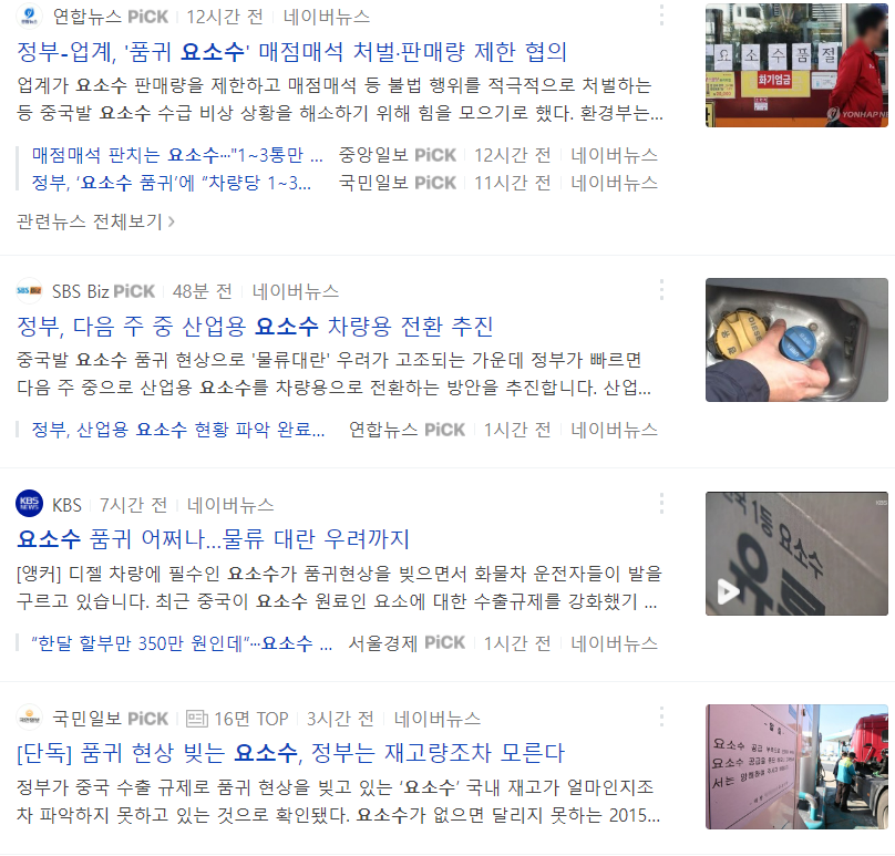 요소수가 품귀현상을 빚고 있기 때문입니다.